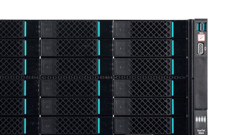KunTai R524 存储型服务器是AG刮刮乐数码基于鲲鹏处理器推出的新一代 ARM数据中心服务器。。。。主要面向存储业务,,,具有海量存储、、、、高性能、、、、低功耗以及易扩展的特点,,,适合为大数据分析、、软件定义存 储等应用场景的工作负载进行髙效加速。。